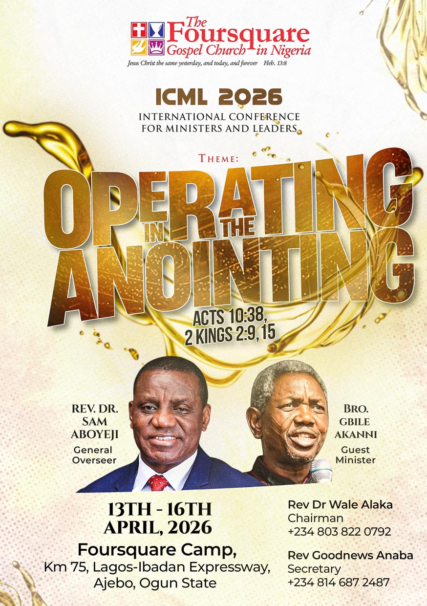 The International Conference for Ministers and Leaders (ICML) is a strategic annual gathering powered by the Foursquare Gospel Church in Nigeria, designed to refresh, equip, and strengthen ministers and kingdom leaders for effective service and greater impact.